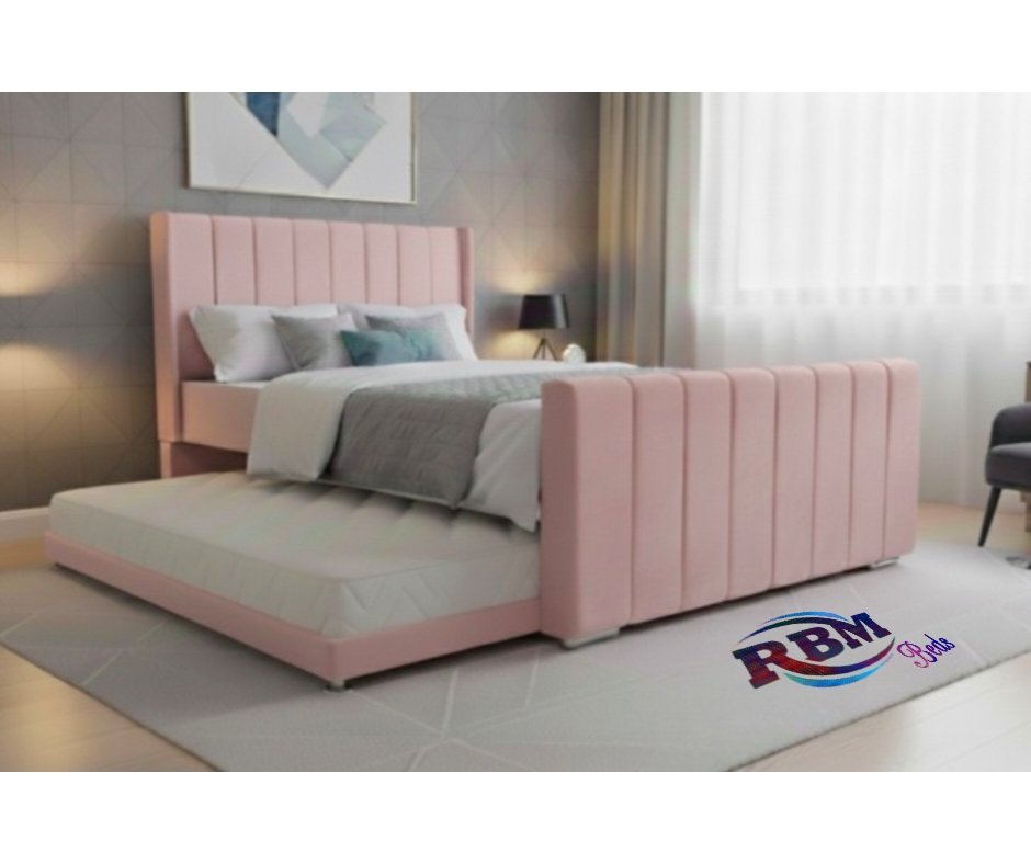 Introducing the Belfast wingback Space Saving – Trundle Guest Bed, designed with heavy-duty castors for effortless movement. Ideal for hosting guests or optimizing space in smaller rooms, this bed combines practicality with style. Enhance your bedroom with the pull out bed, where comfort and convenience come together seamlessly.