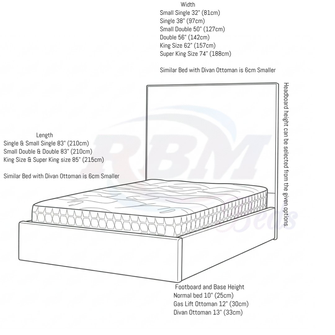 Small Single 2ft6", Single 3ft, Small Double 4ft, Double 4ft6", King Size 5ft, Super King Size 6ft |