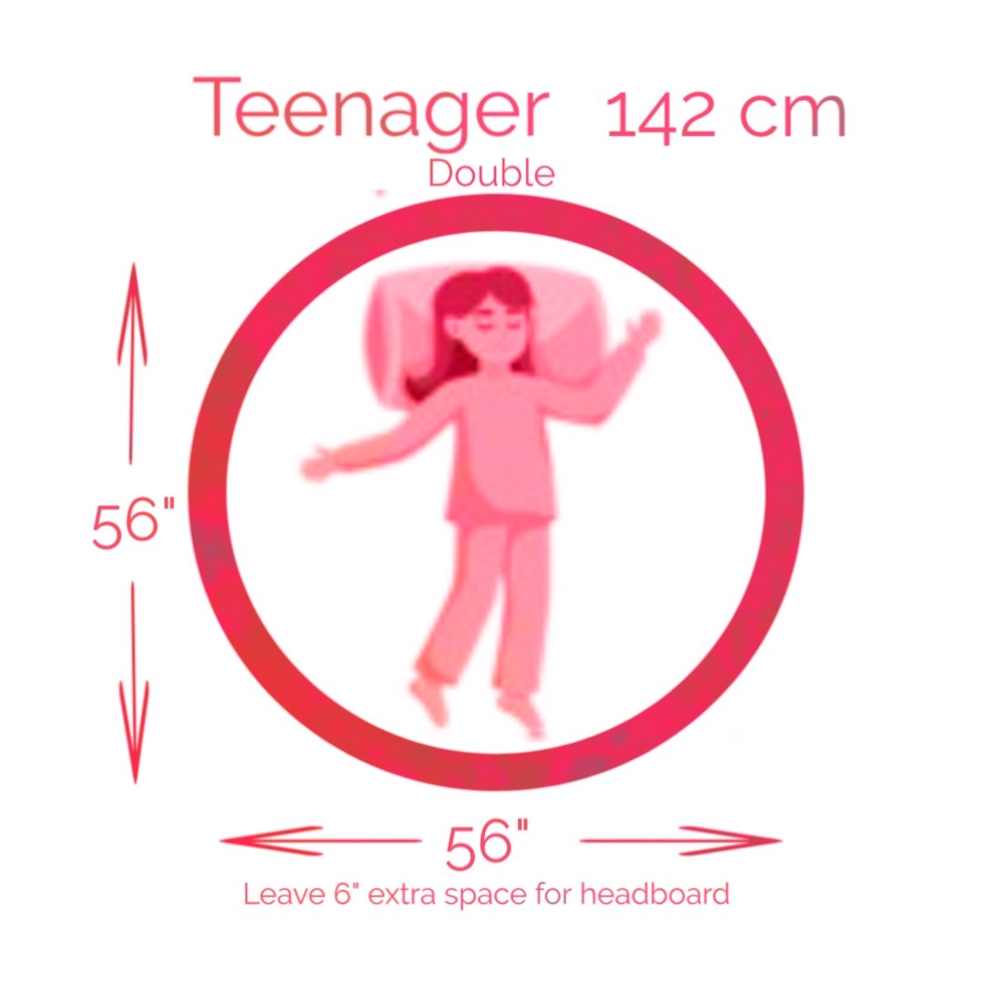 Small Double For Junior (50"x50"), Double For Teenager (56"x56"), King Size For Adult (62"x62"), Super King Size For Couple (72"x72") |