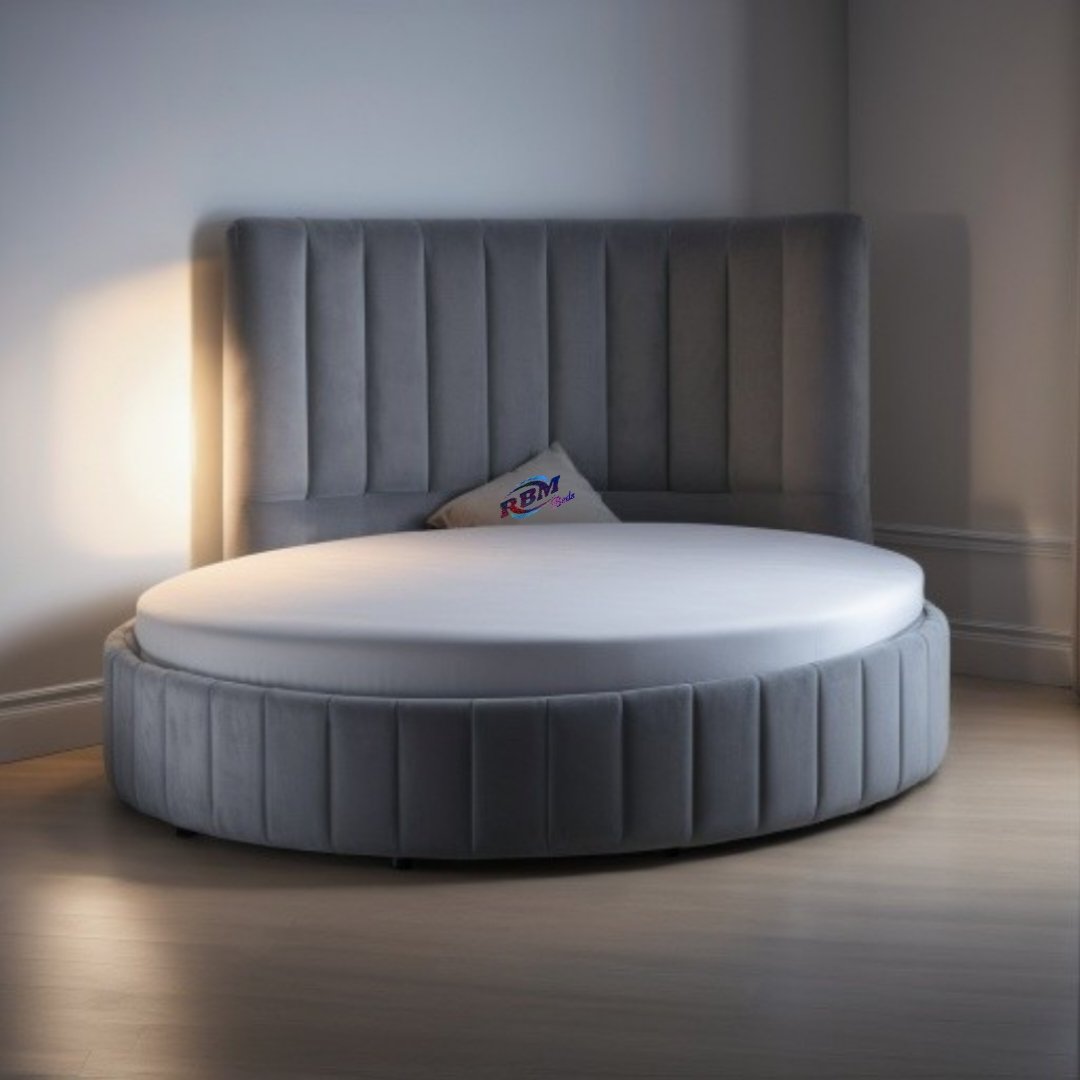 The Moon Circular Round line Bed will bring theatrical glamour to your bedroom. Designed for immediate impact and handmade acquisitively in the UK, this stunning circular bed is an iconic centrepiece for your home. The solid structured base separates in two halves which gives you ease of access to most bedrooms and Headboard goes against the wall. Our Footstools and Blanket box etc don’t come Rounded shape they’re Rectangular Shape.