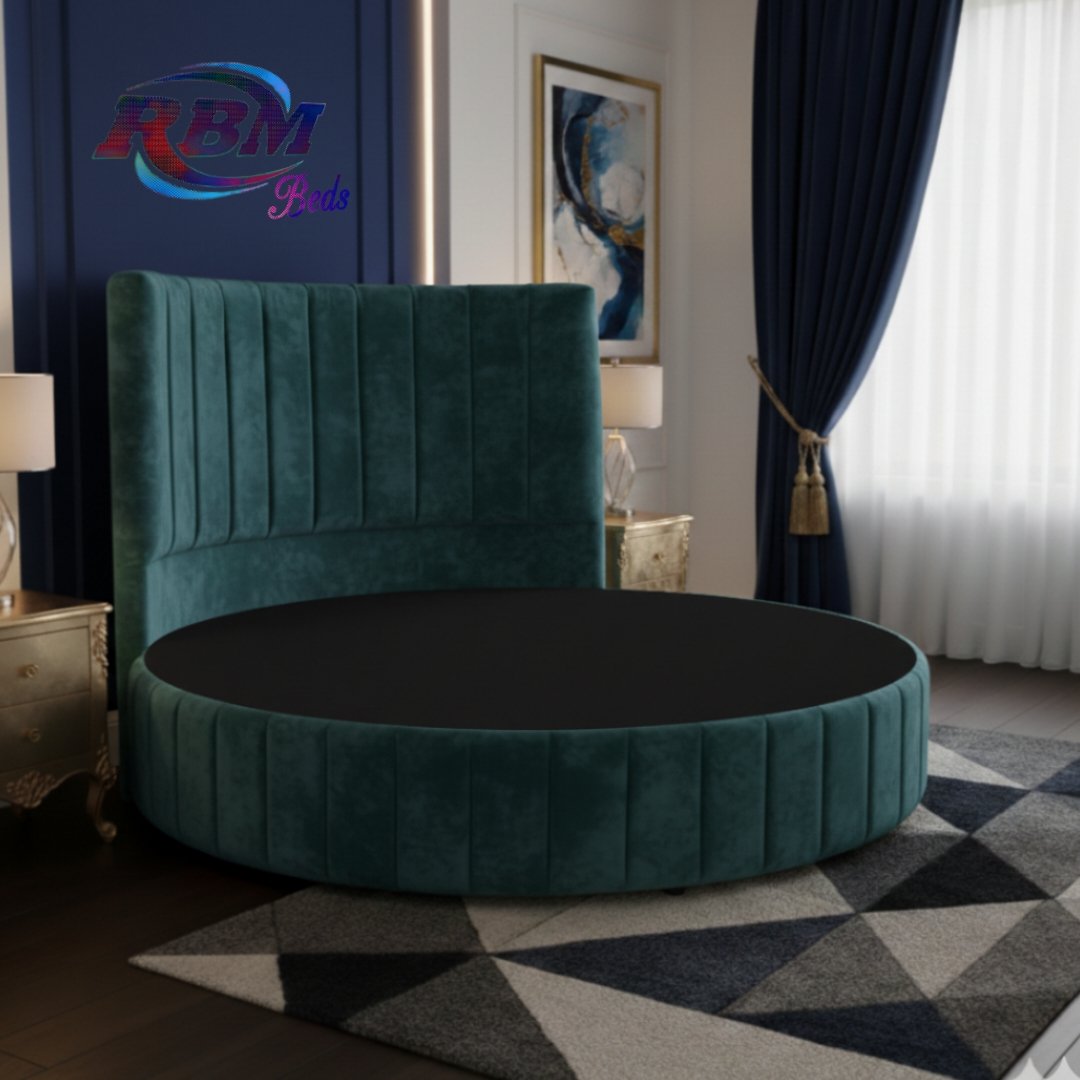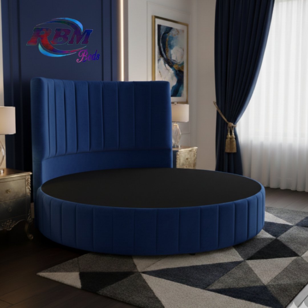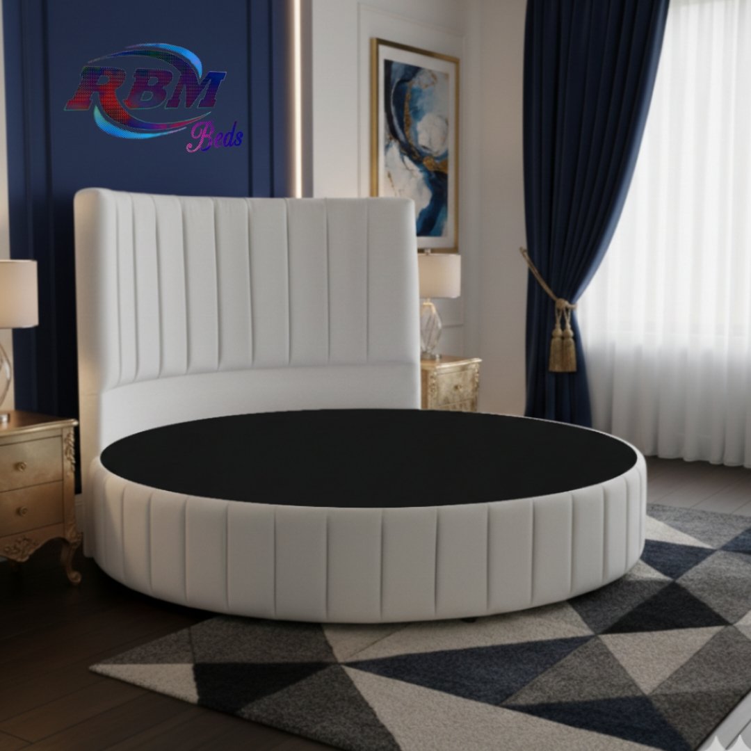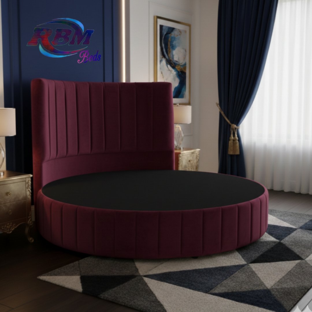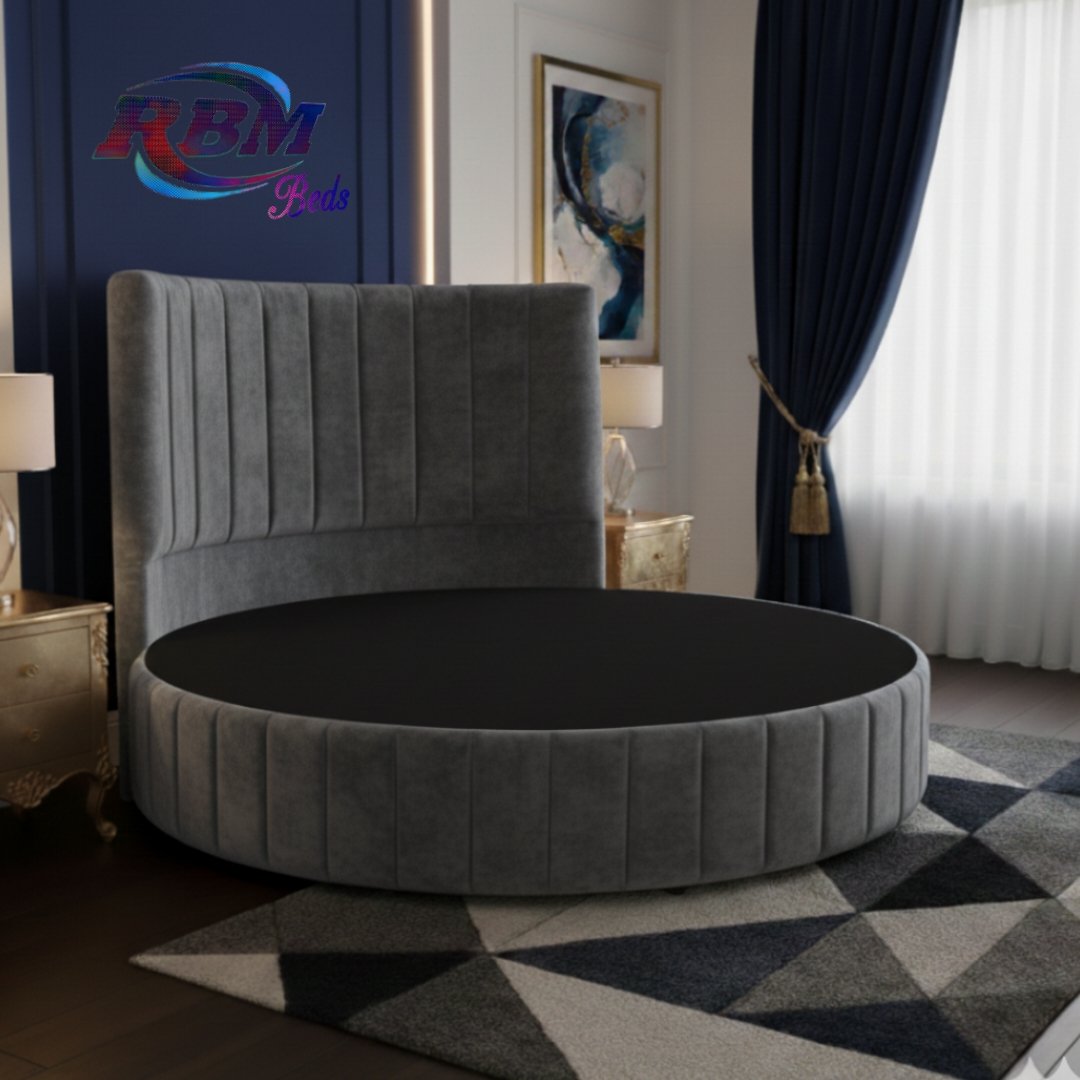 The Moon Circular Round Line Bed will bring theatrical glamour to your bedroom. Designed for immediate impact and handmade exclusively in the UK, this stunning circular bed is an iconic centrepiece for your home withe Line ribbed panel design on it. The solid structured base separates into two half-moon sections, which gives you ease of access to most bedrooms. The headboard goes directly against the wall and does not require any fixing; the bed is simply placed against the wall. The half-moon round bases slot neatly and securely inside the headboard, fitting directly into place. Once positioned, the mattress is placed on top to complete the setup. Our Footstools and Blanket Box etc. don’t come in a rounded shape; they are supplied in a rectangular shape.