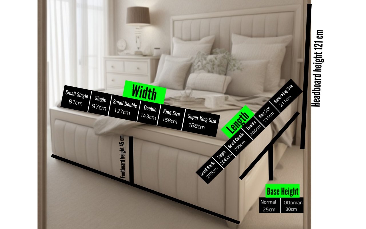 Small Single 2ft6", Single 3ft, Small Double 4ft, Double 4ft6", King Size 5ft, Super King Size 6ft |